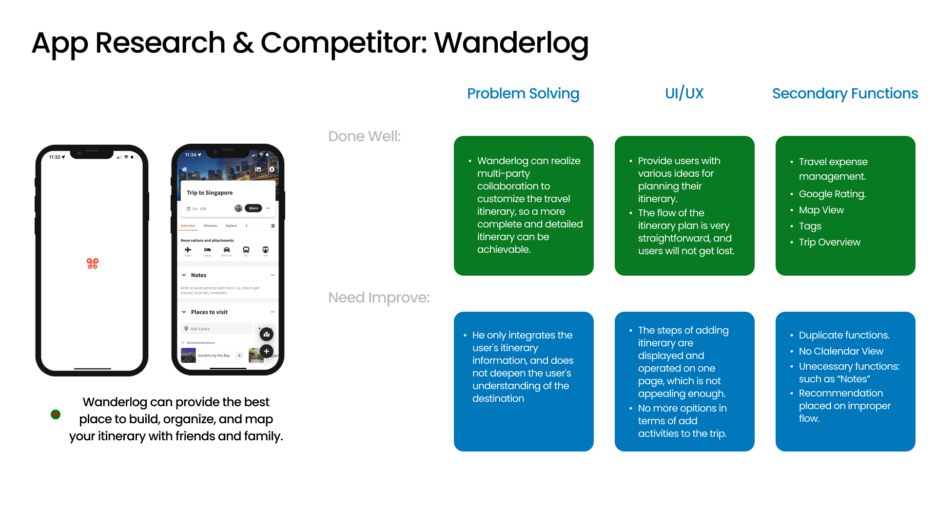 TripGo is a specialized app tailored for itinerary customization catering to travel enthusiasts. To gain comprehensive insights into the precise requirements of itinerary planning for this target audience, I conducted a thorough research process encompassing user interviews, surveys, competitive analysis, leading to the identification of user pain points and matrices, thus revealing strategic opportunities. In this section, I intend to present a detailed exposition of my research methodology, branding efforts, mockup designs, user flow elucidations, and ultimately the culmination of these endeavors in the form of the final digital product.